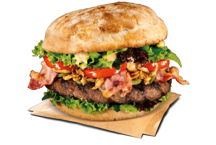 (BurgerbrötchenA, A1 RindfleischJ, Bacon2, 3, 8, Sandwichgurken2, 9, RöstzwiebelnA , Spezialsauce1, 2, C, J)