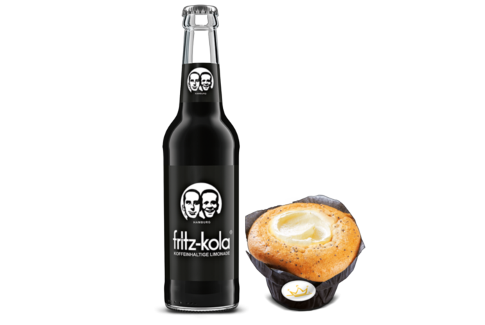 fritz-kola koffeinhaltige Limonade 0,33L mit Muffin Cheesecake Lemon