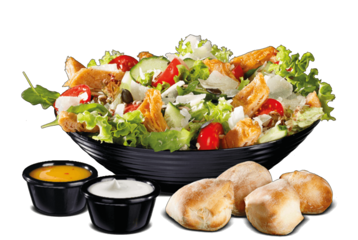 (Grana PadanoG, Soyastreifen nach Hähnchen Art F, Körnermischung bestehend aus: Pinien-, Sonnenblumen-. und Kürbiskernen, Salatbrötchen A,A1)