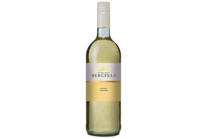 Schloss Bergfels Kerner mild (1 L) - Zitronengelb im Glas, mit fruchtigen Aromen von Apfel, Banane, Zitrus und Pfirsich. Mild und harmonisch mit angenehmer Süße und feiner Säure. (14,99 € / L)